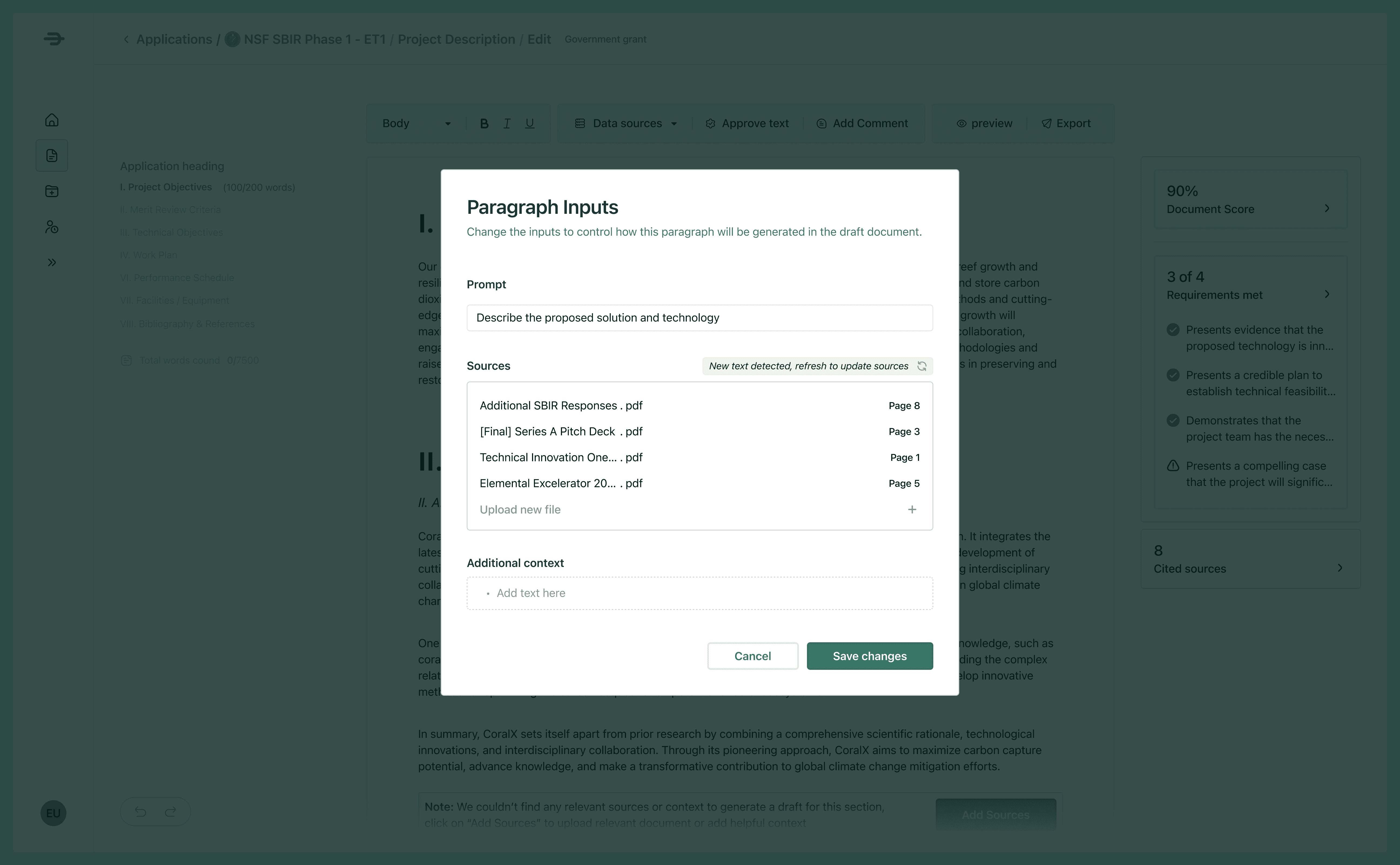 AI-powered products often feel magical, however, when the use case requires accuracy, generated content is more terrifying than useful: not knowing where something comes from makes it impossible to trust. This is an age-old problem in AI, commonly referred to as AI explainability or AI interpretability. In our case, we help draft Letters of Intent, Project Plans, etc. This text is technical and cannot have mistakes. Naturally, writers are worried about accuracy of generated text!
